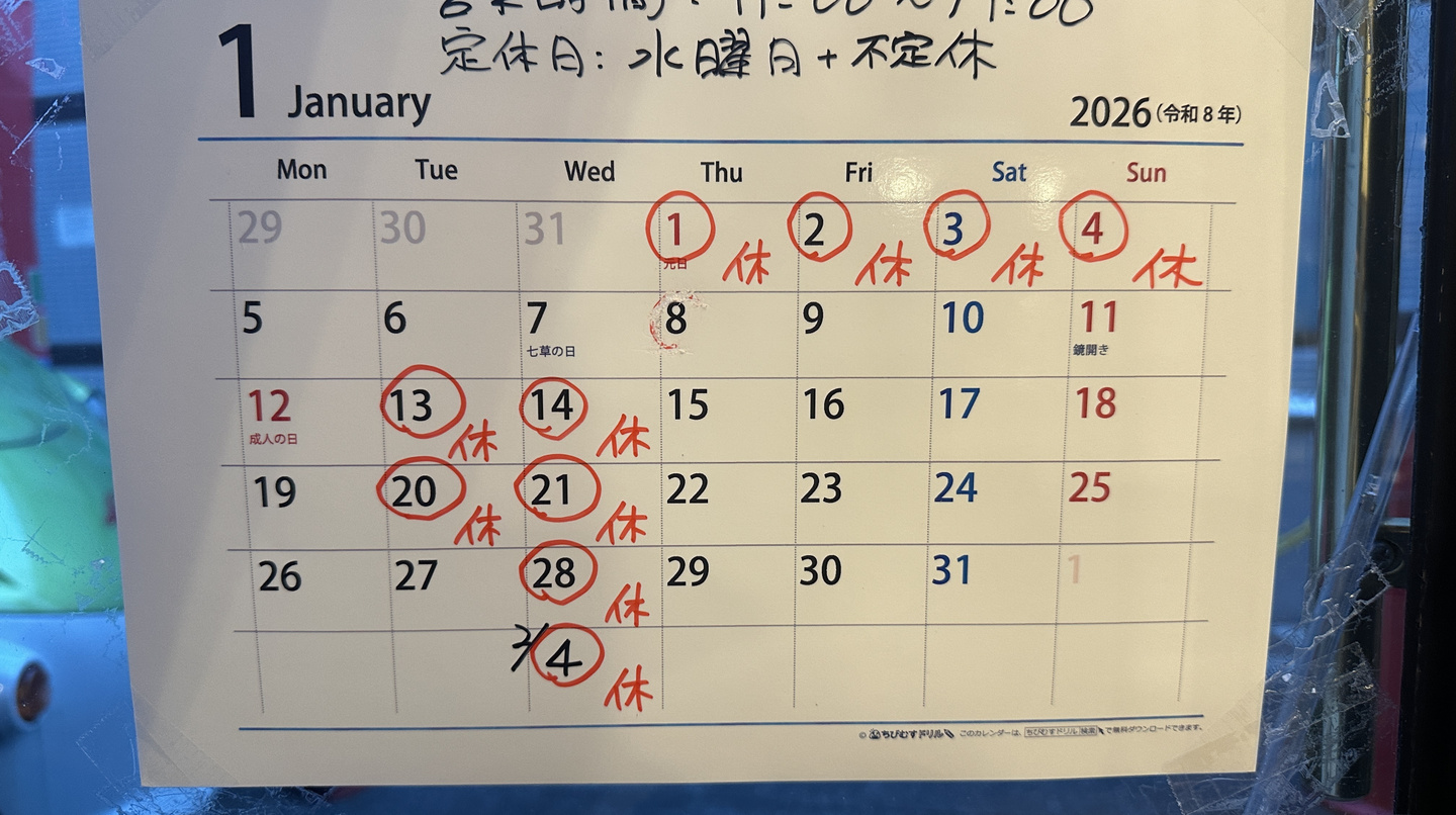 誠に勝手ながら都合により、臨時休業、短縮営業する場合があります。
