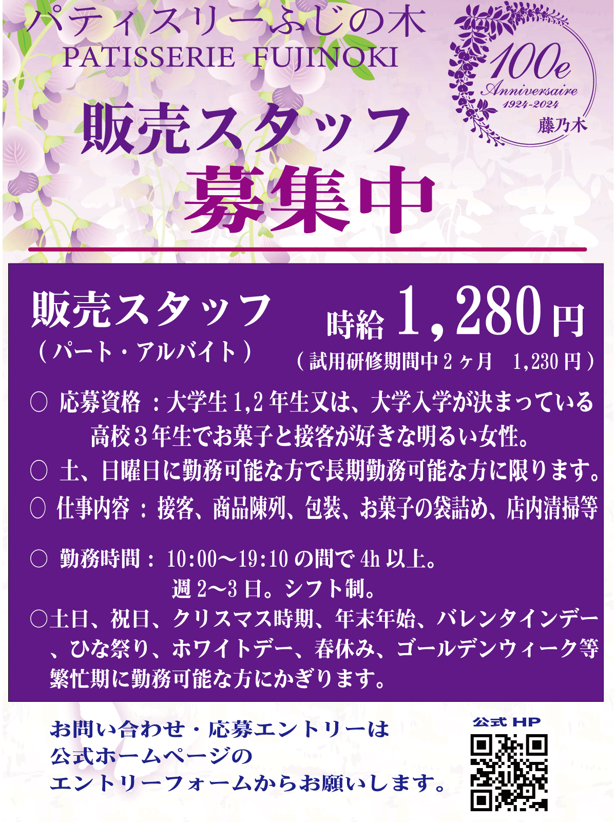 お菓子と接客の好きな明るい女性で、クリスマス期間勤務できる方。